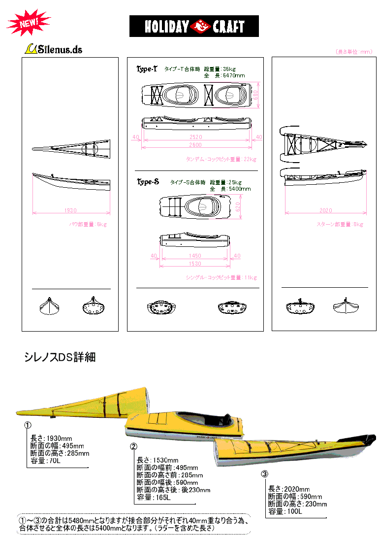 | ◆シレノス.ds Type−S シングル(一人乗り)カヤックの3分割艇です。 |